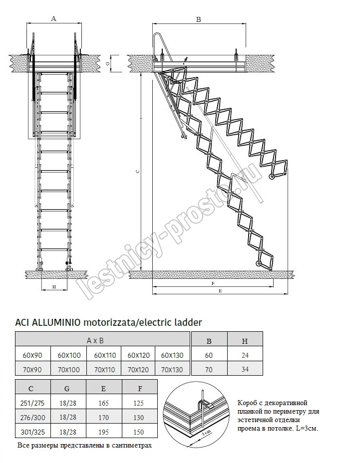 Чердачная лестница с электроприводом. Fantozziscale Motor Base 60×130 см