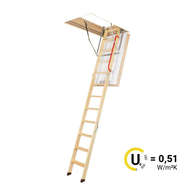Превосходно подходит для домов, в которых наблюдается значительная разница температур между неотапливаемым холодным чердаком и отапливаемым жилым помещением. В данной модели применена новая конструкция, повышающая прочность и надежность движущихся элементов. Нагрузка при эксплуатации перенесена на лестничный марш, благодаря чему крышка полностью заполнена утеплителем. Лестница LWT комплектуется удобным поручнем и пластиковыми наконечниками на ножки. Монтажный комплект LXK приобретается отдельно.