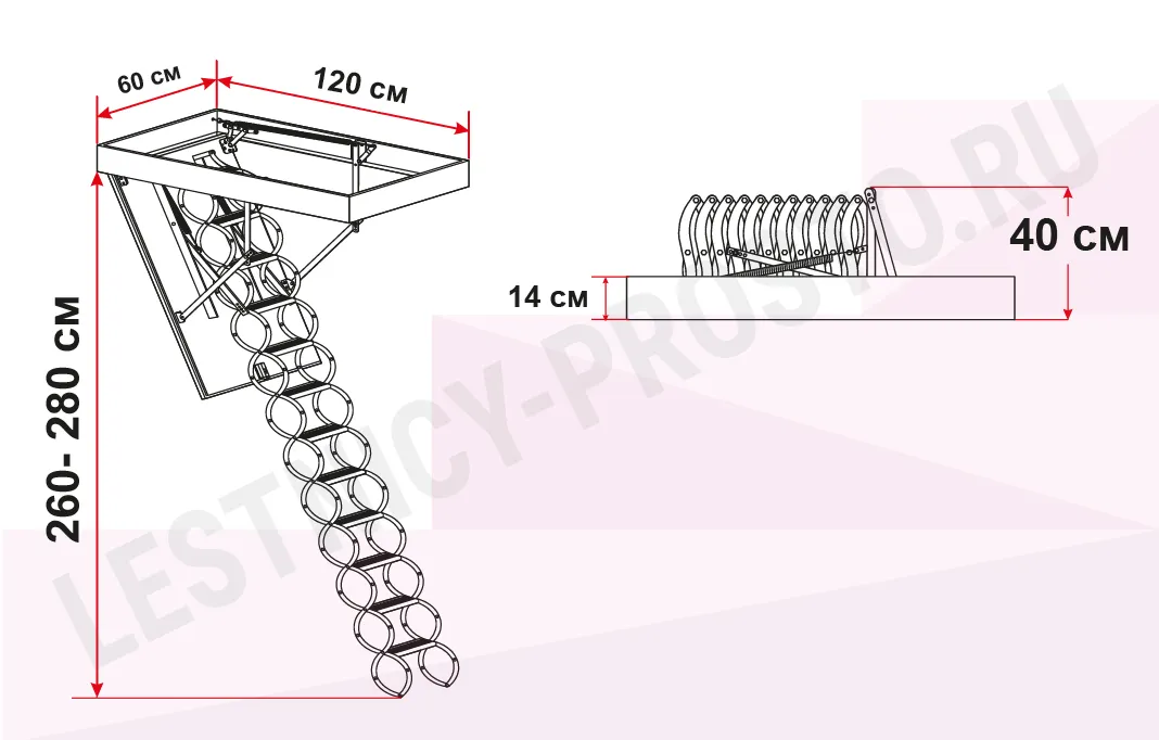 Чердачная термоизоляционная ножничная лестница FAKRO LST 60×120 см, h-280 см