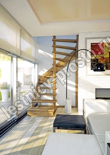 Деревянная межэтажная лестница ЛЕС-01 2525-2720 проем 1640-900, Сосна