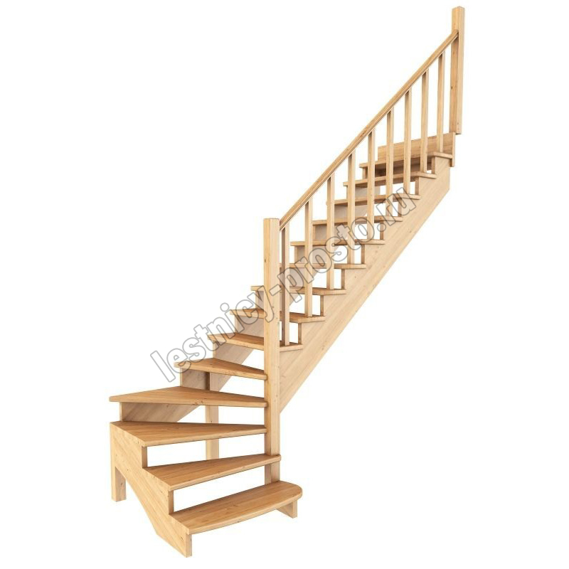 Базовый комплект включает в себя деревянные элементы лестницы и ограждения без какого-либо покрытия.