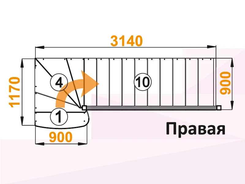 Комплектация Элементы лестницы с подступёнками, базовое ограждение