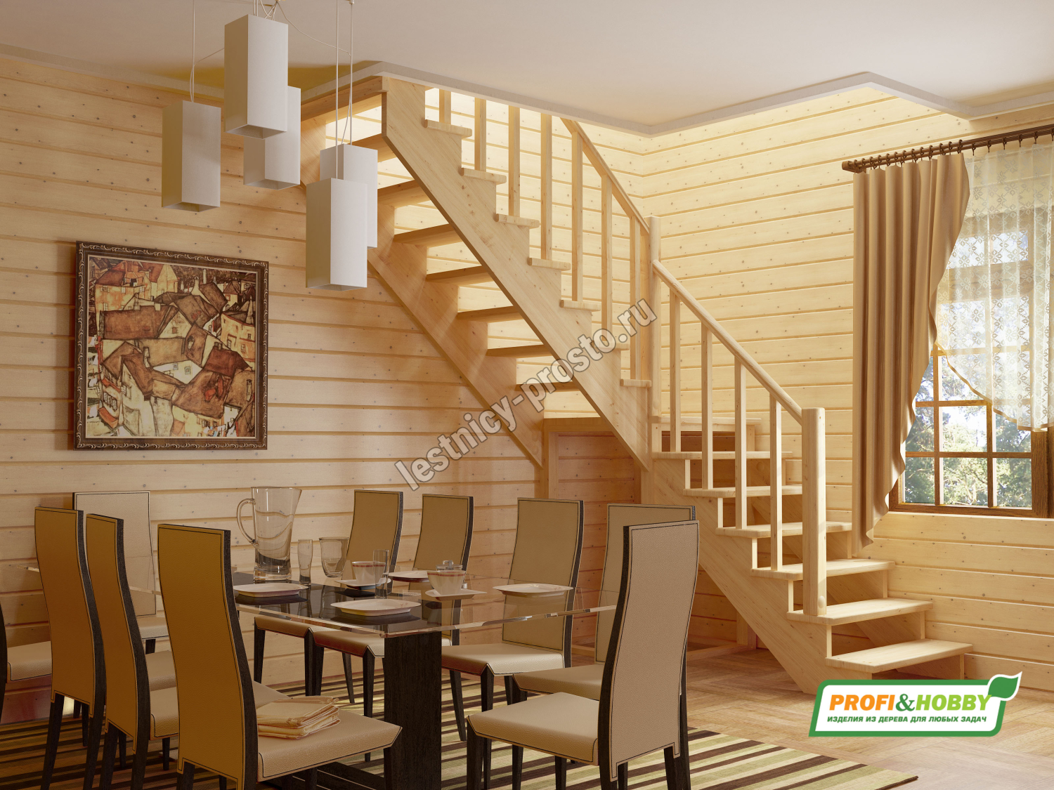 Лестница из сосны К-002М/4 с подступёнками