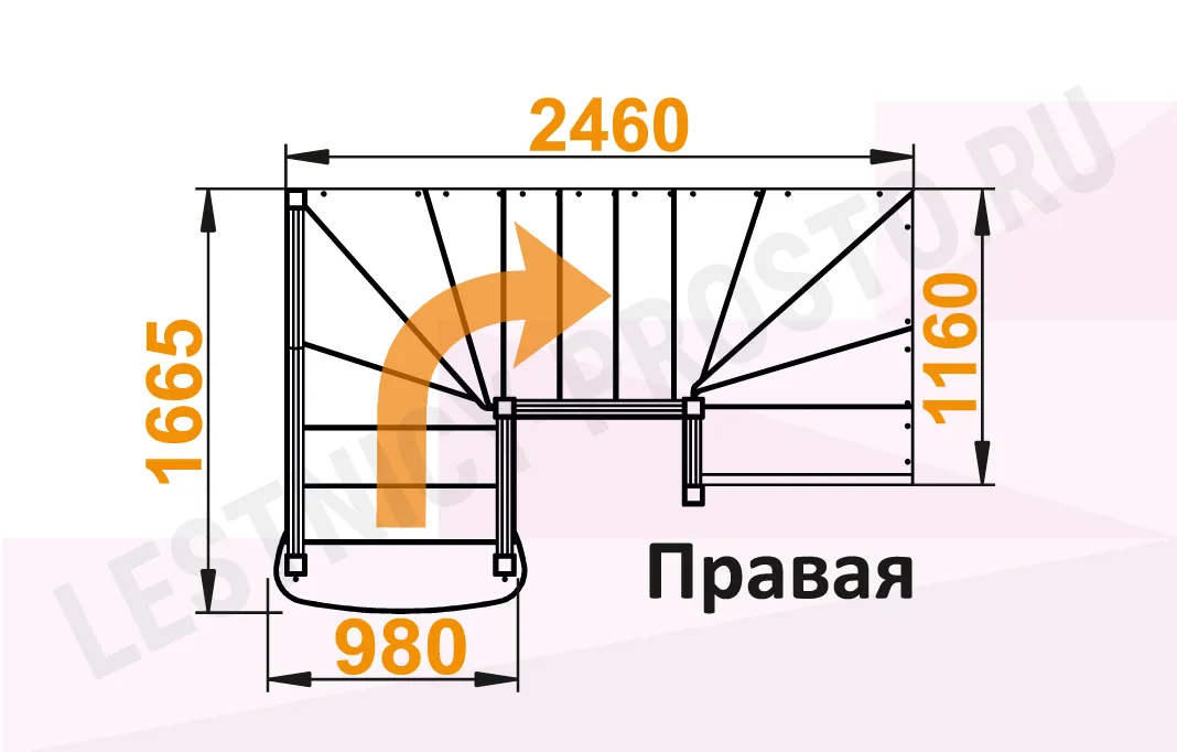 Схема лестницы К-009М/2 с поворотом направо