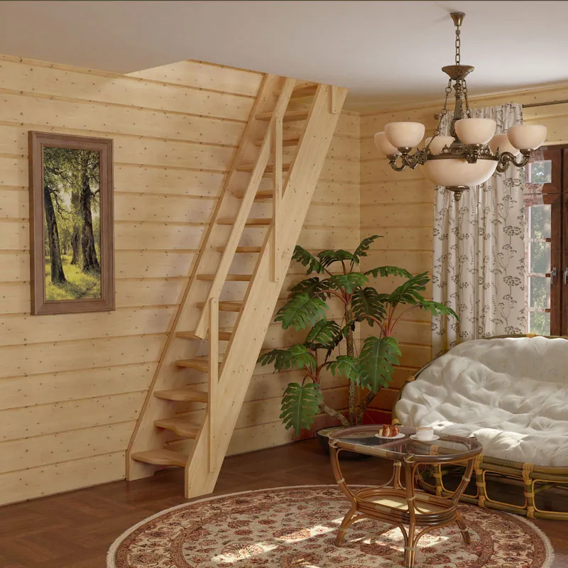 Базовый комплект включает в себя деревянные элементы лестницы и ограждения без какого-либо покрытия.