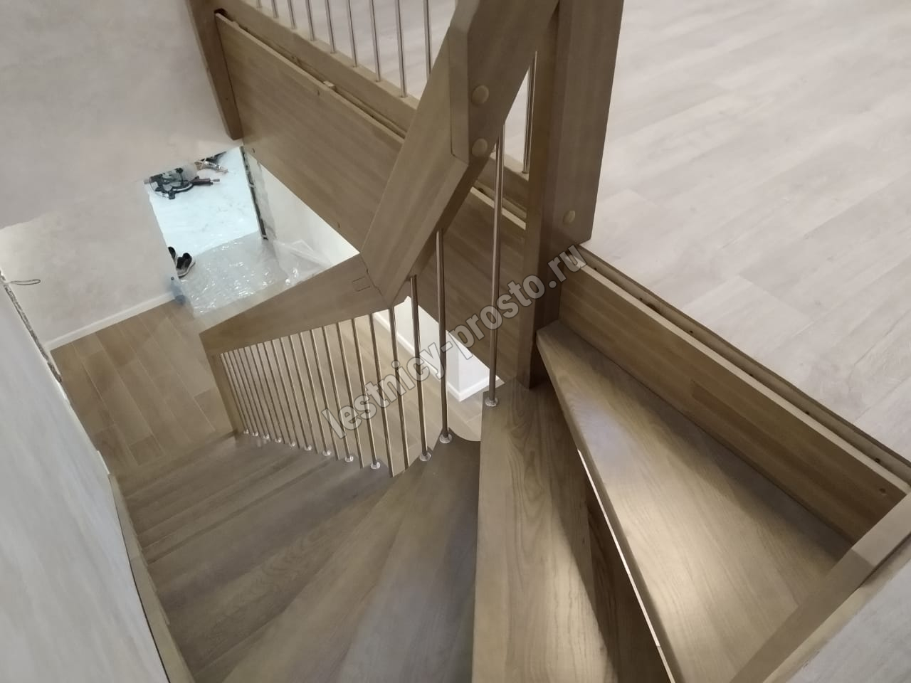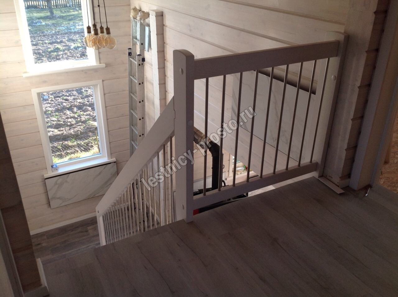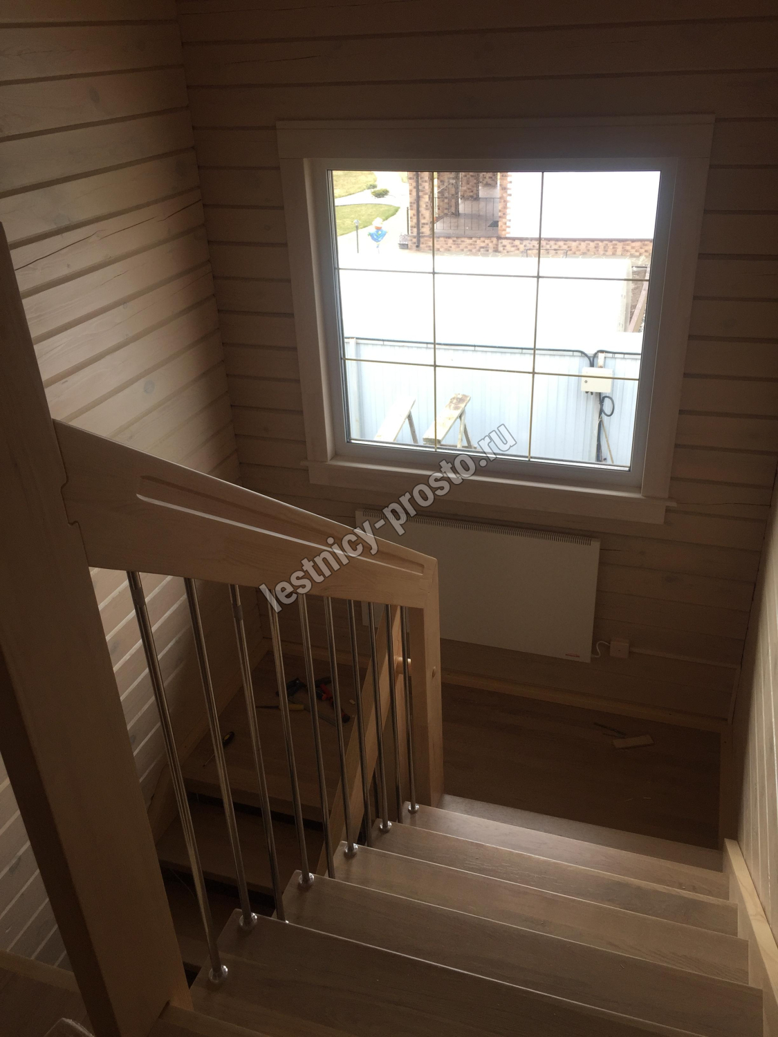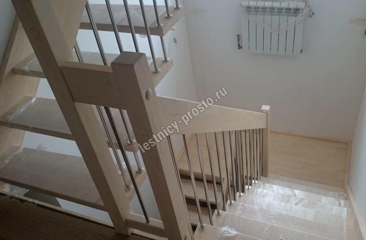 возможна комбинированная лестница: из сосны (ступени бук, ясень, дуб);
