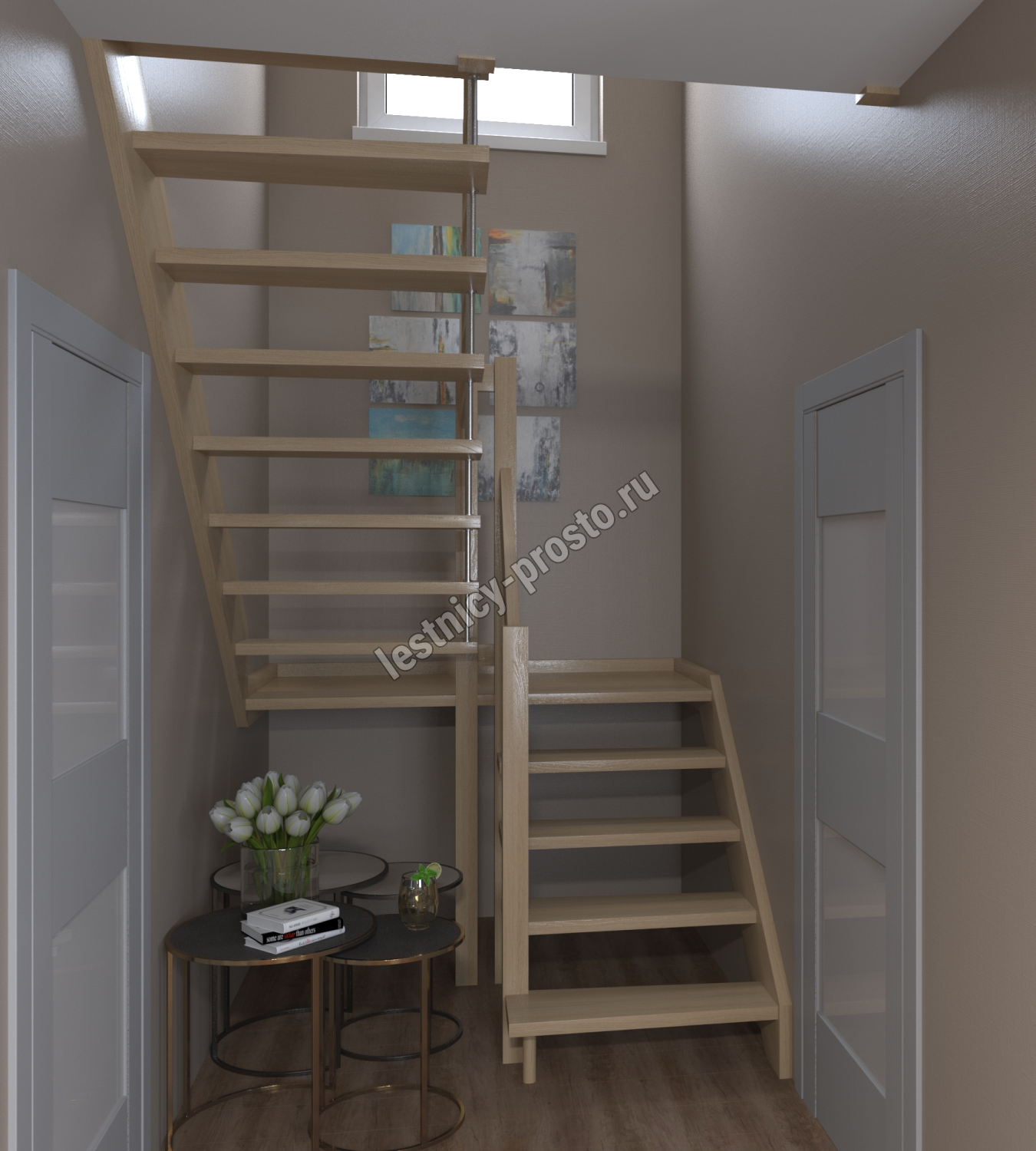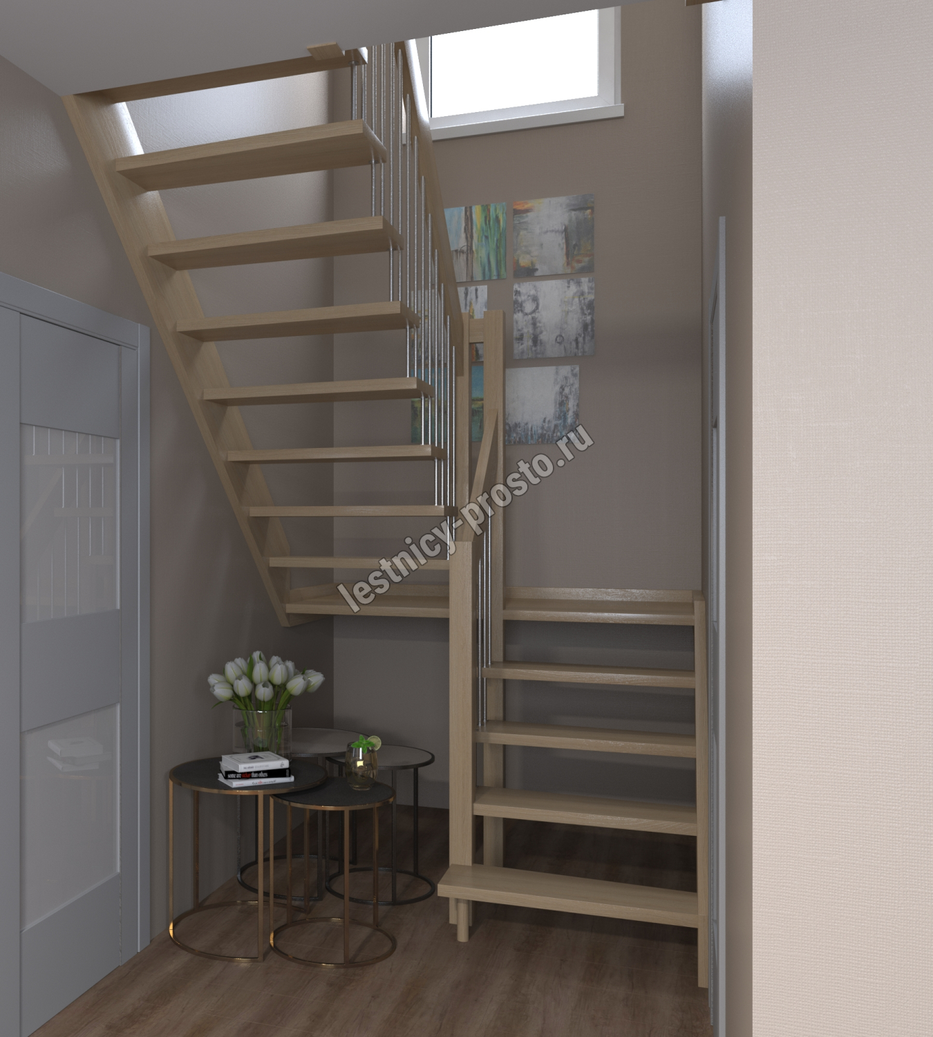 Лестница Prosto Console п-образная забежная, ясень h320 см