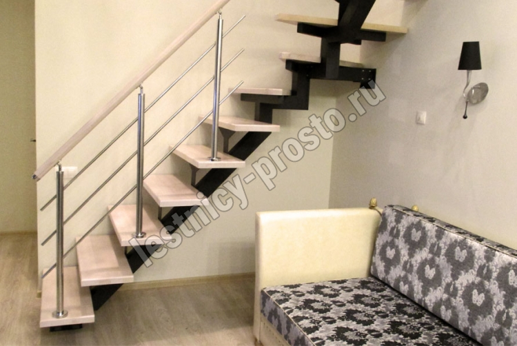 Комплект ограждений для Г-образной лестницы PROSTO MONO из 12 ступеней.