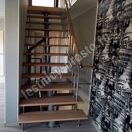 Готовый комплект ограждений собран специально для п-образной модульной лестницы PROSTO MODULE h337.5 (из 14 ступеней) со стойками цвета "хром". В комплекте: