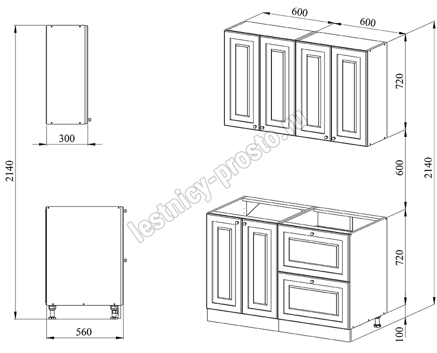 4. Тумба под мойку 600 х 560 х 720 мм - 1 шт
