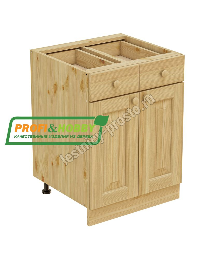 Тумба 2 двери, 2 ящика 600 х 560 х 720 сосна, бесцветный акриловый лак