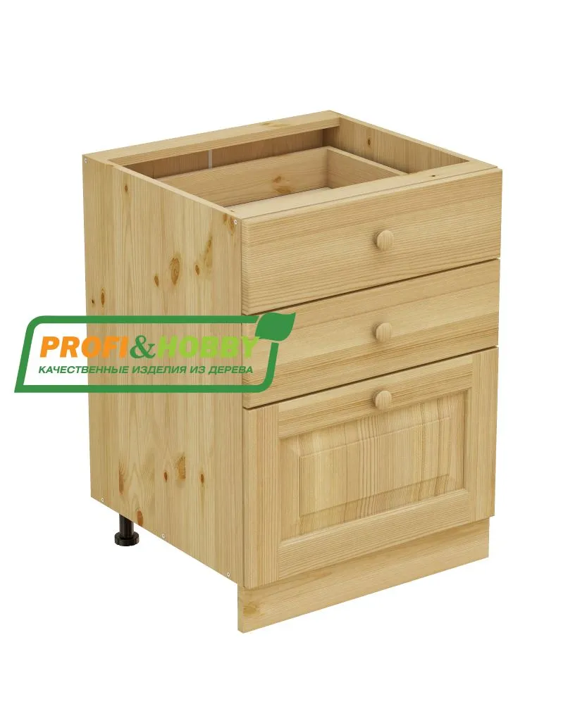 Тумба 3 ящика 600 х 560 х 720 сосна, без покраски