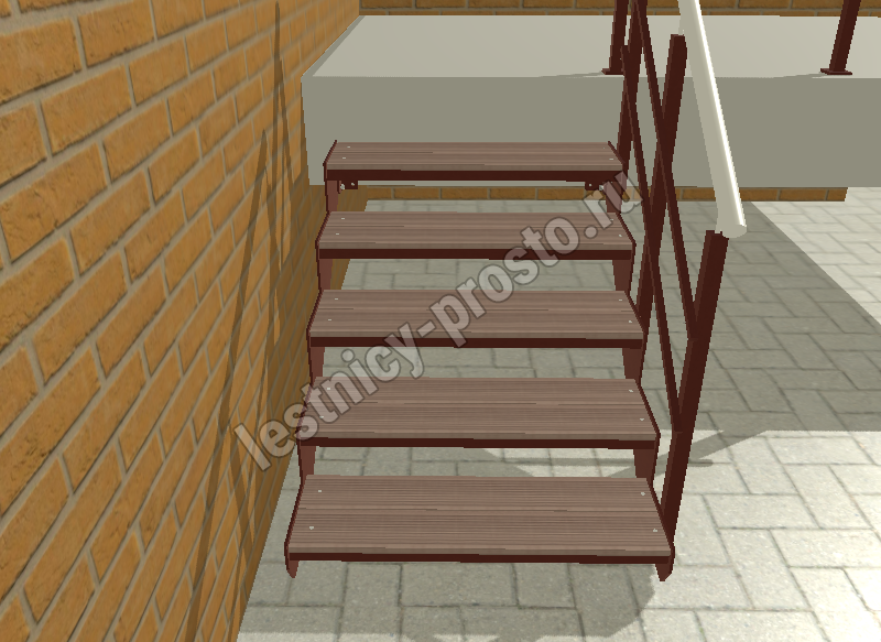Надежный красивый каркас из толстого стального листа толщиной 8мм с оригинальным дизайном. Покрытие порошковое, очень прочное и долговечное. Все детали каркаса крепятся с помощью болтов, благодаря чему Вы можете собрать каркас самостоятельно без применения сварки. Ступени лестницы состоят из металлической рамки, обеспечивающей необходимую прочность, и покрытия из террасной доски ДПК (древесно-полимерный композит). Ступени не боятся воды и мороза, не теряют со временем свой внешний вид и не требуют ухода. Под заказ, возможно изготовление ступеней из других материалов, таких как: рифленая сталь, лотки под плитку, решетчатый настил, дерево. Базовое ограждение: крашеное или из полированной нержавеющей стали.