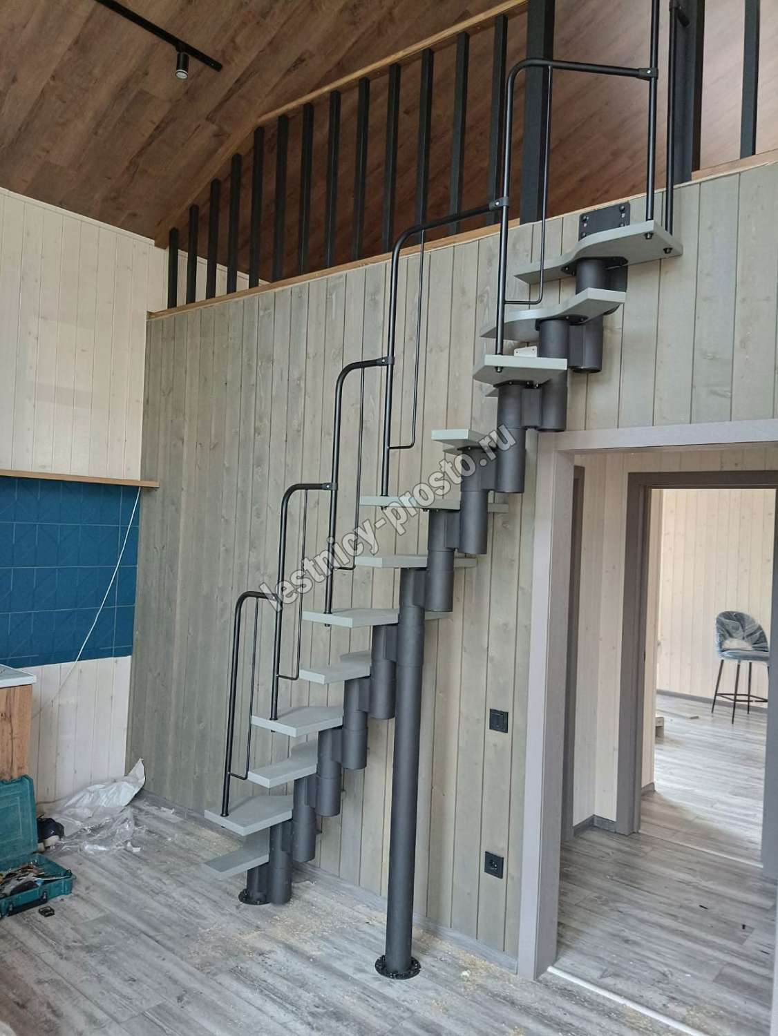 Лестница Prosto Urban Black гусиный шаг 700 мм, h234-336 см (13 ступеней), дуб