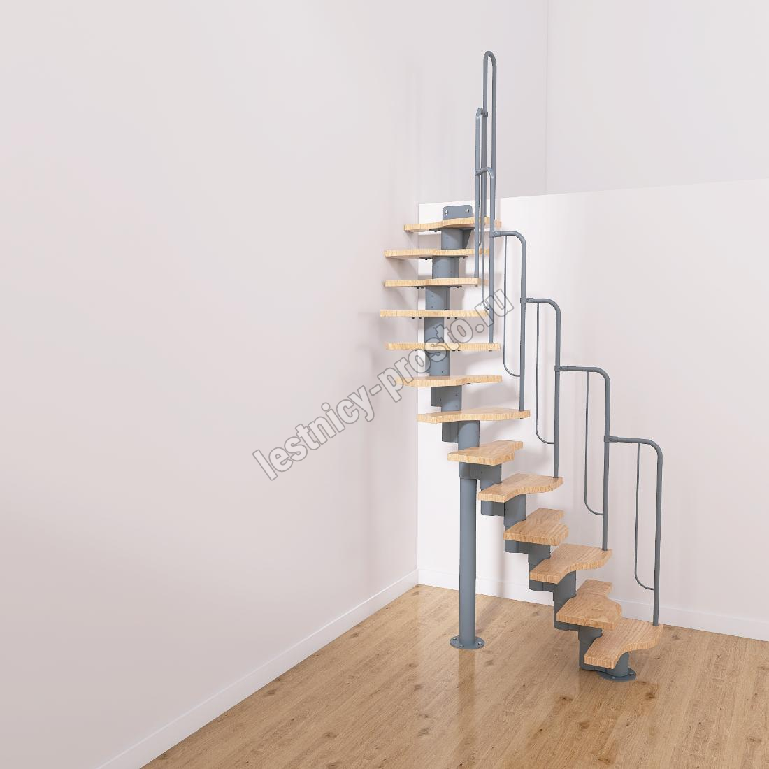 Лестница Prosto Urban Grey г-образная гусиный шаг 600 мм, h234-336 см (13 ступеней)