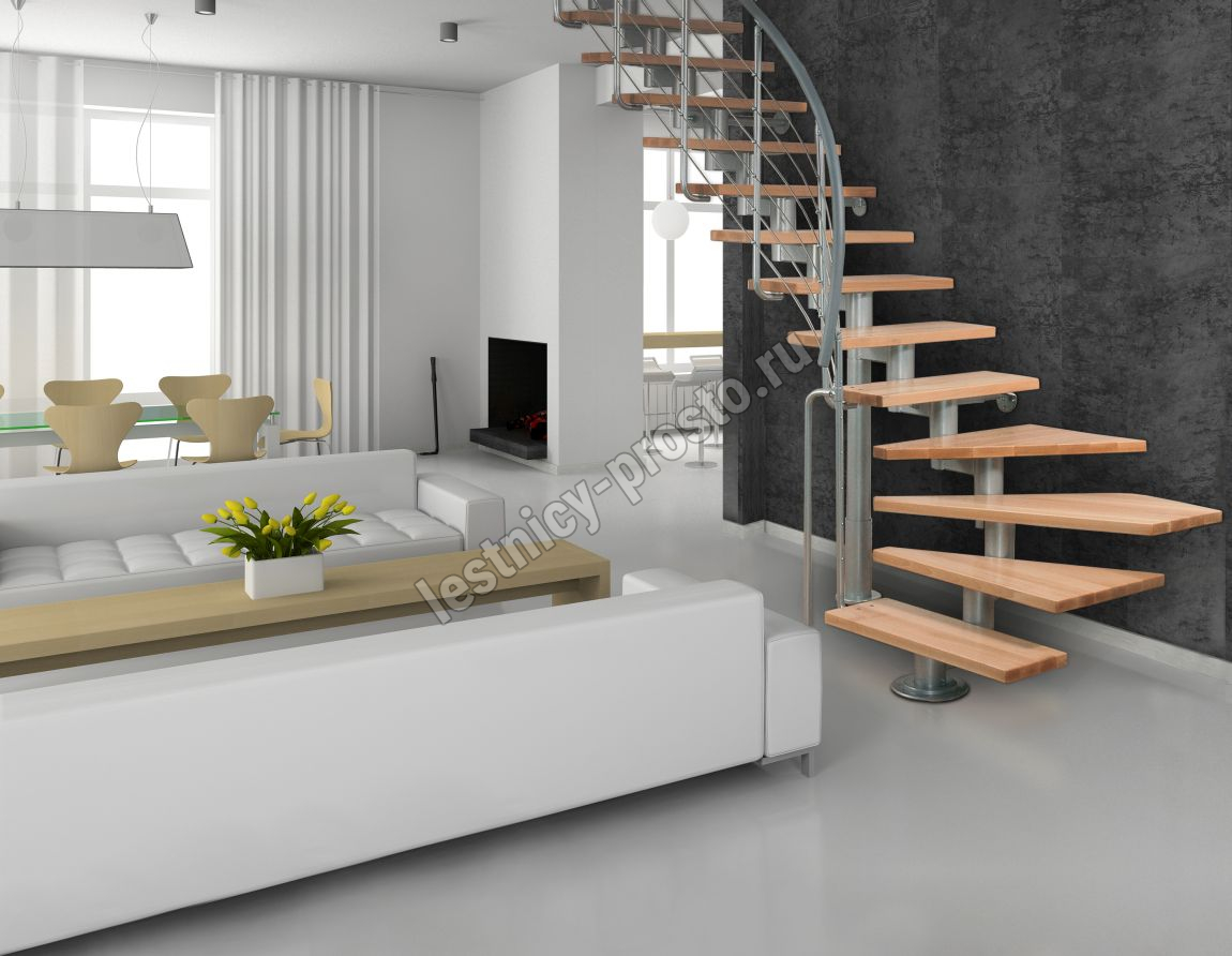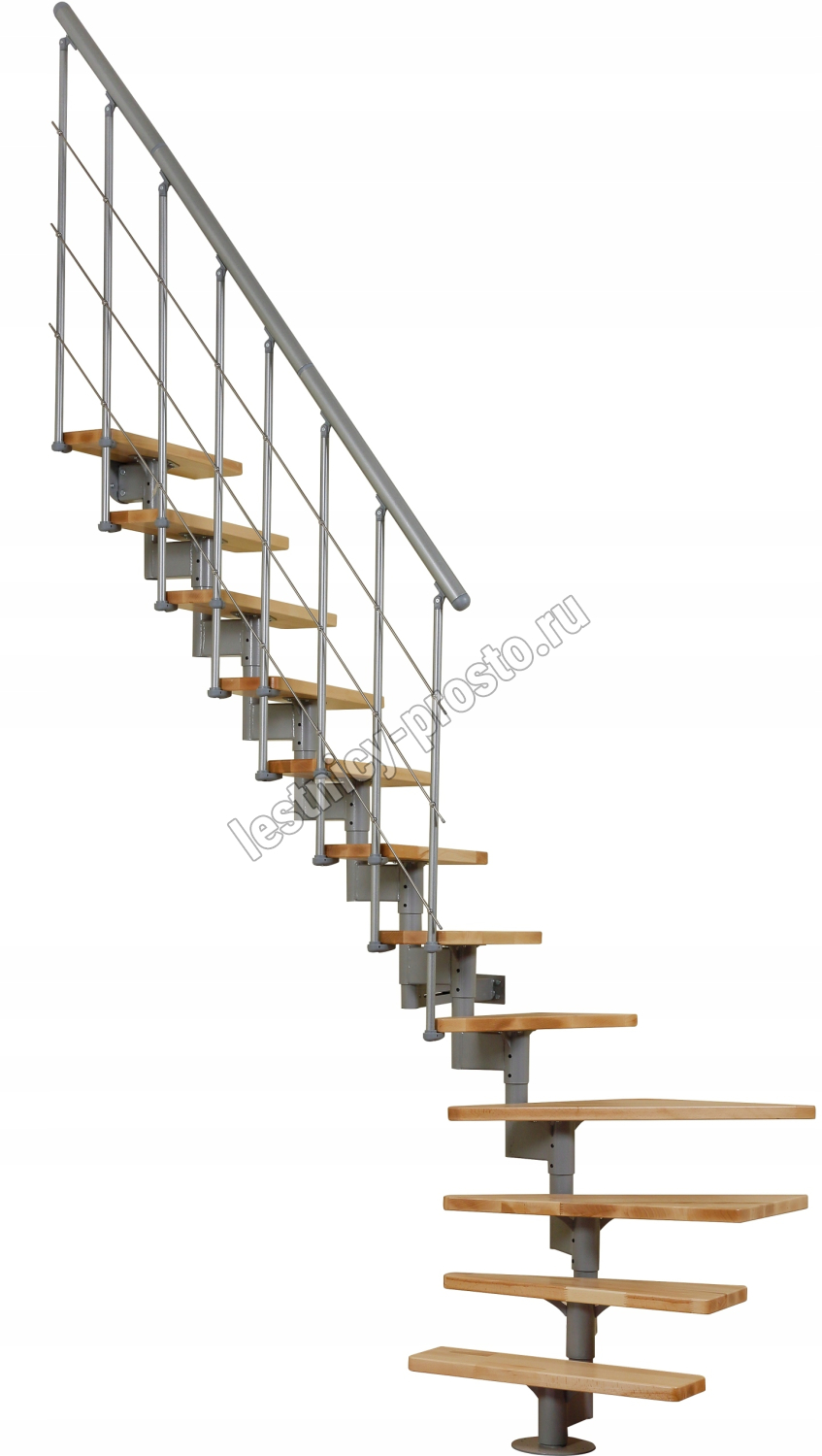 Модульная лестница DIXI PLUS серебро, светлый бук