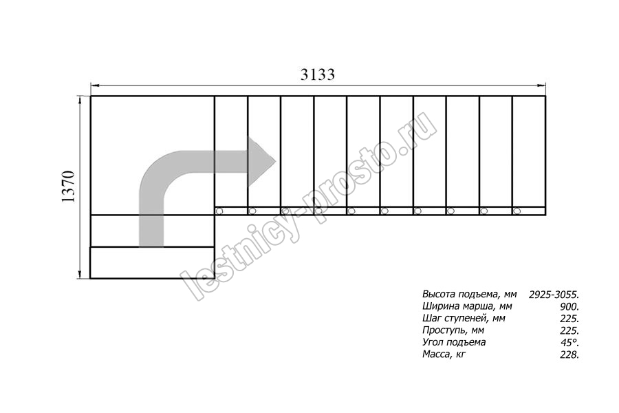 Модульная лестница Статус 225 2925-3055, Белый, Бук, Крашеная