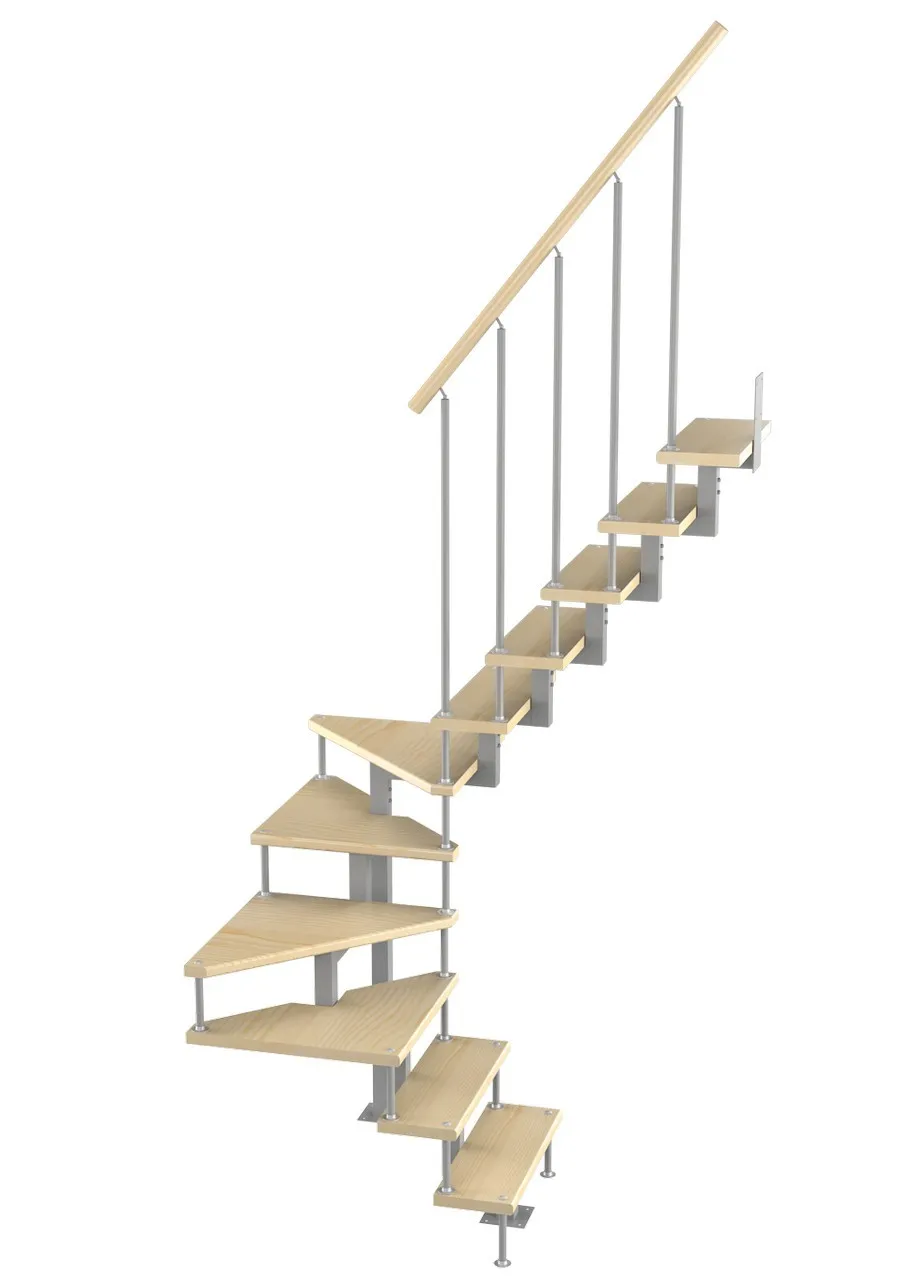 Модульная малогабаритная лестница Эксклюзив 2475-2700, Серый, Лиственница, Нержавеющая сталь