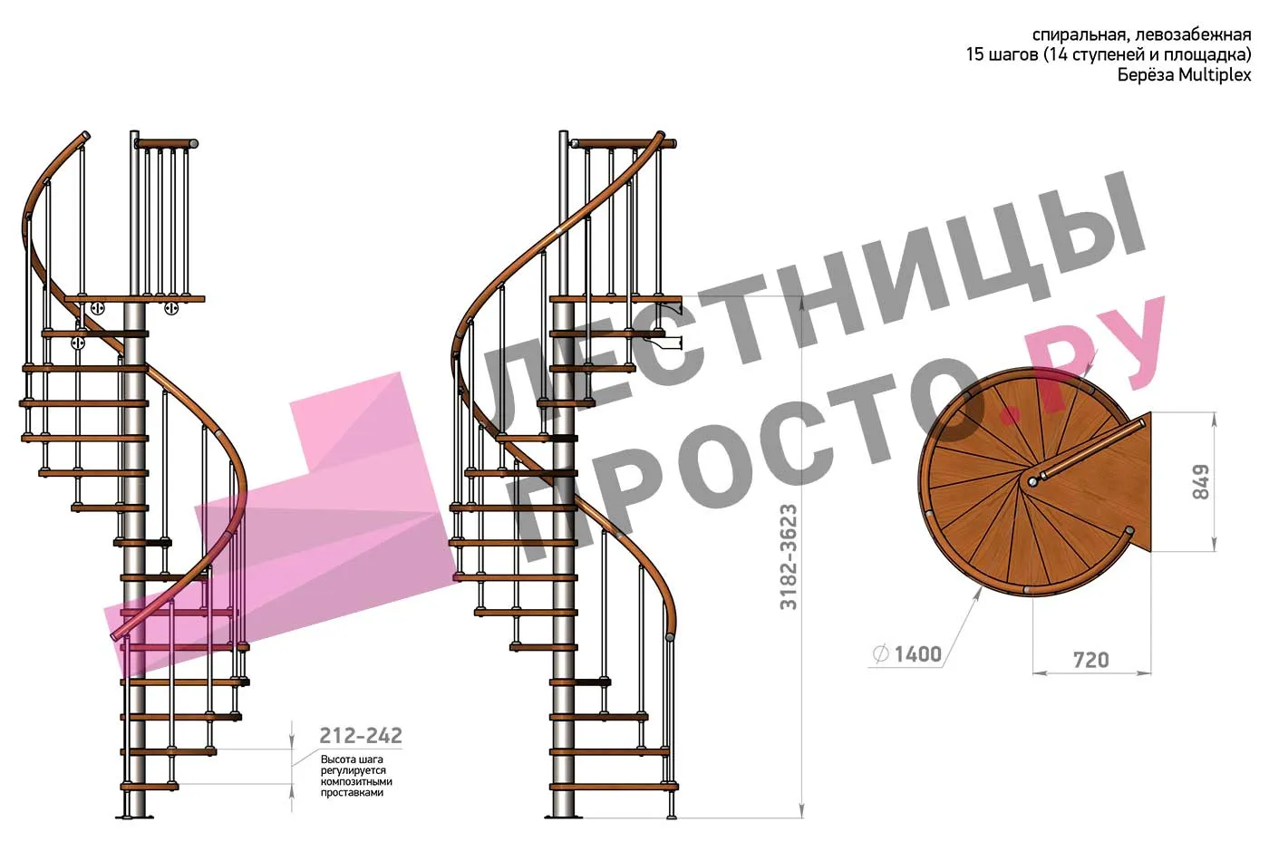 Высота шага 212 - 242 мм