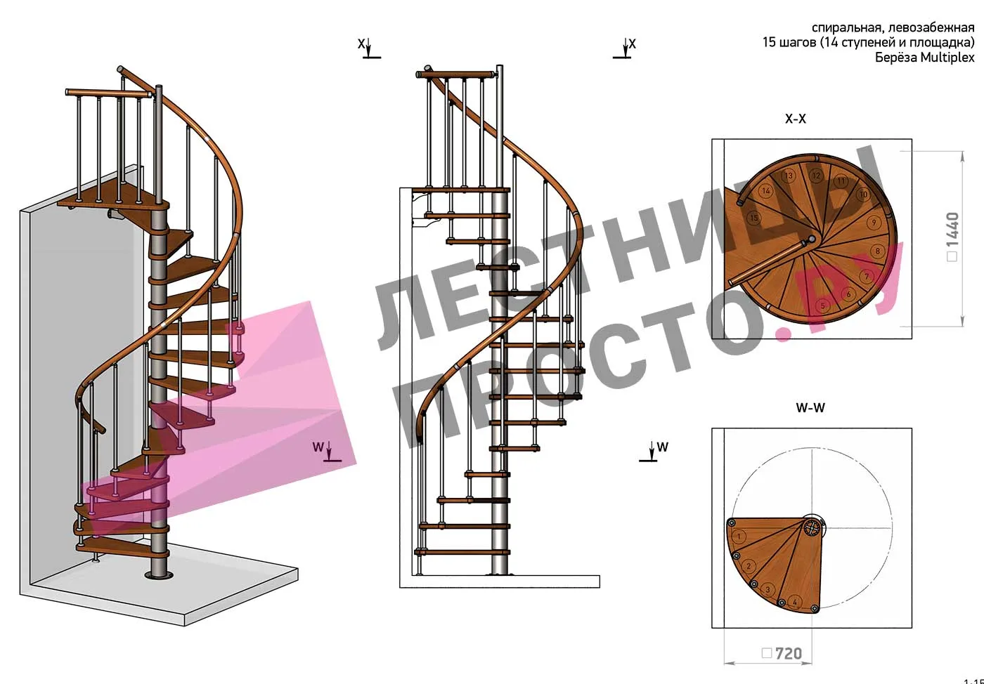 Решение об ориентации поворота принимается при сборке лестницы (комплект собирается и в правозабежную, и в левозабежную лестницу).