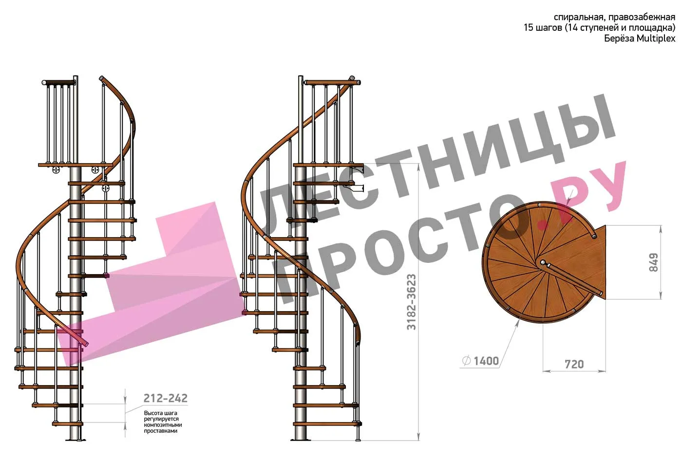 Винтовая лестница Prosto Spiral White D160см, h254.5-289.8 см