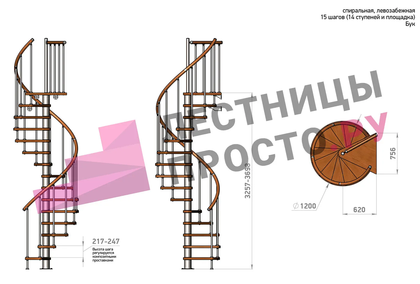 Винтовая лестница Prosto Spiral White D120см, h325.7-369.8 см, бук |
