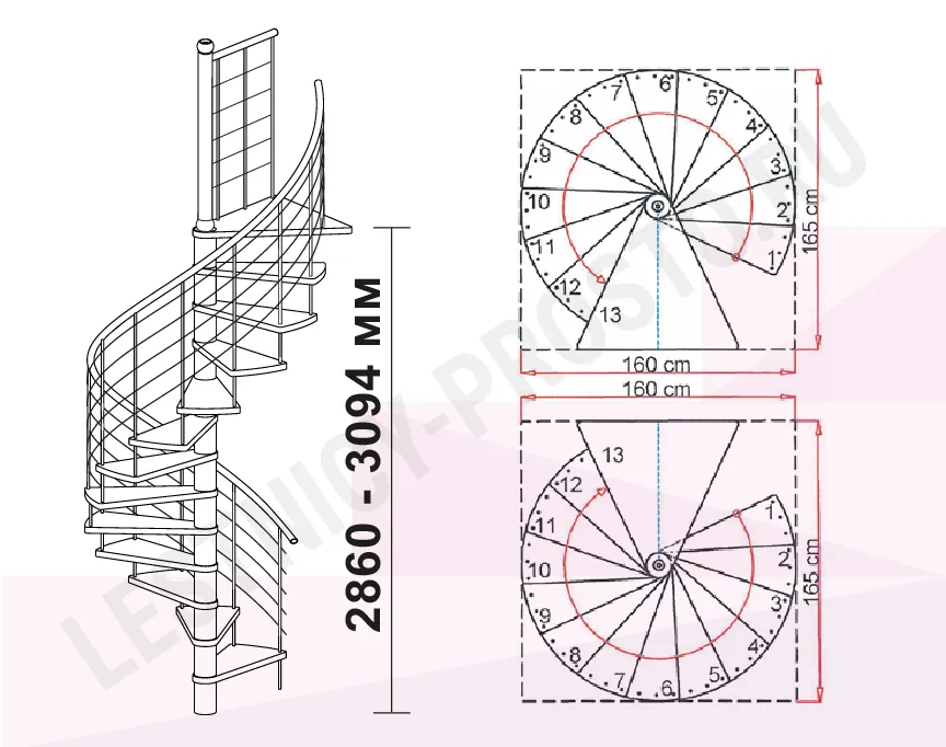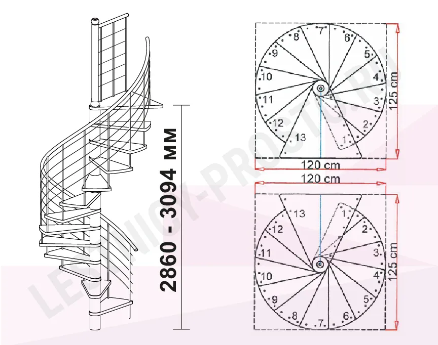 Высоту базовой модели можно увеличить с помощью дополнительных секций (ступень + фрагмент каркаса + фрагмент ограждения) до 3560 мм.