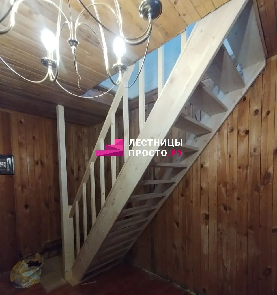 Прямая деревянная лестница с балюстрадой