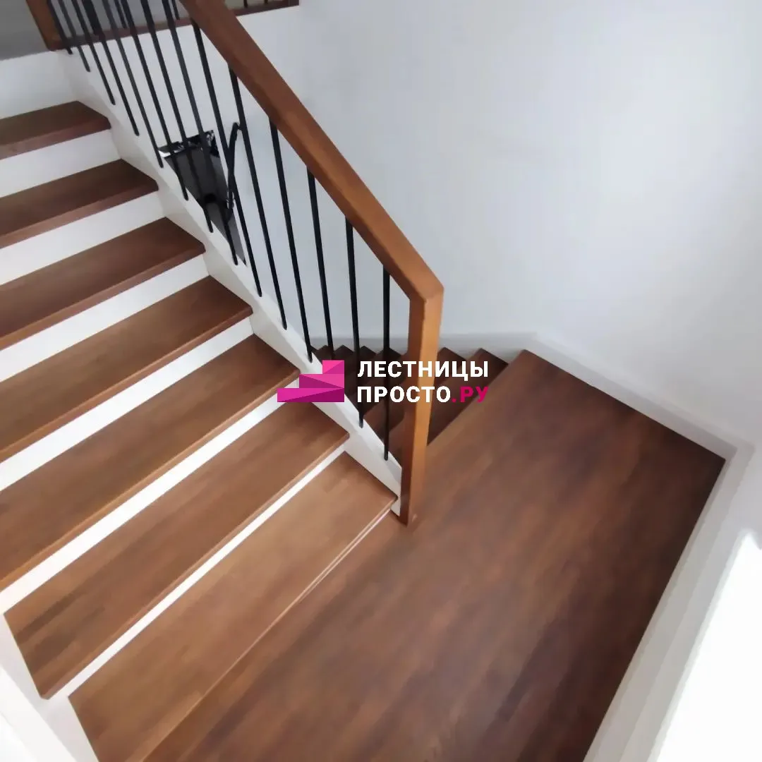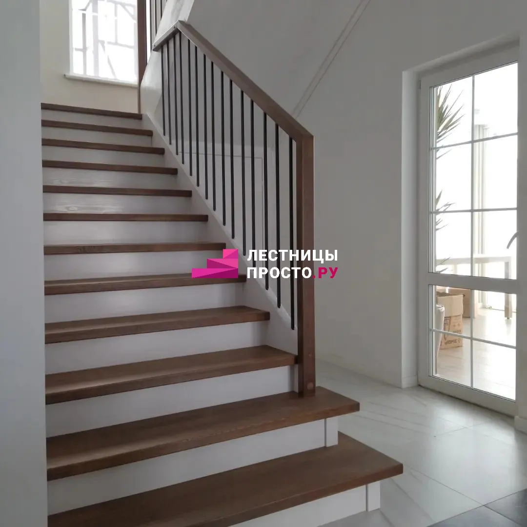 Подступенники, фальш-косоуры и сапожки (пристенной плинтус) выполнены из МДФ.